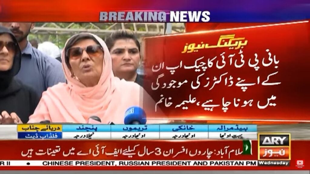 علیمہ خانم کا کہنا تھا کہ عظمیٰ خان نے بانی پی ٹی آئی کی صحت کے بارے میں دریافت کیا، وہ خود ڈاکٹر ہیں، بانی پی ٹی آئی بالکل ٹھیک ہیں، سوشل میڈیا پر فیک خبریں پھیلائی جا رہی ہیں۔