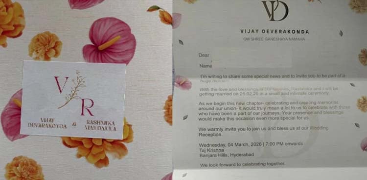 اس دعوت نامے میں وجے دیوراکونڈا نے اہل خانہ کی دعاؤں اور محبت کا ذکر کیا اور قریبی افراد کو اس پرمسرت موقع میں شرکت کا کہا ہے۔