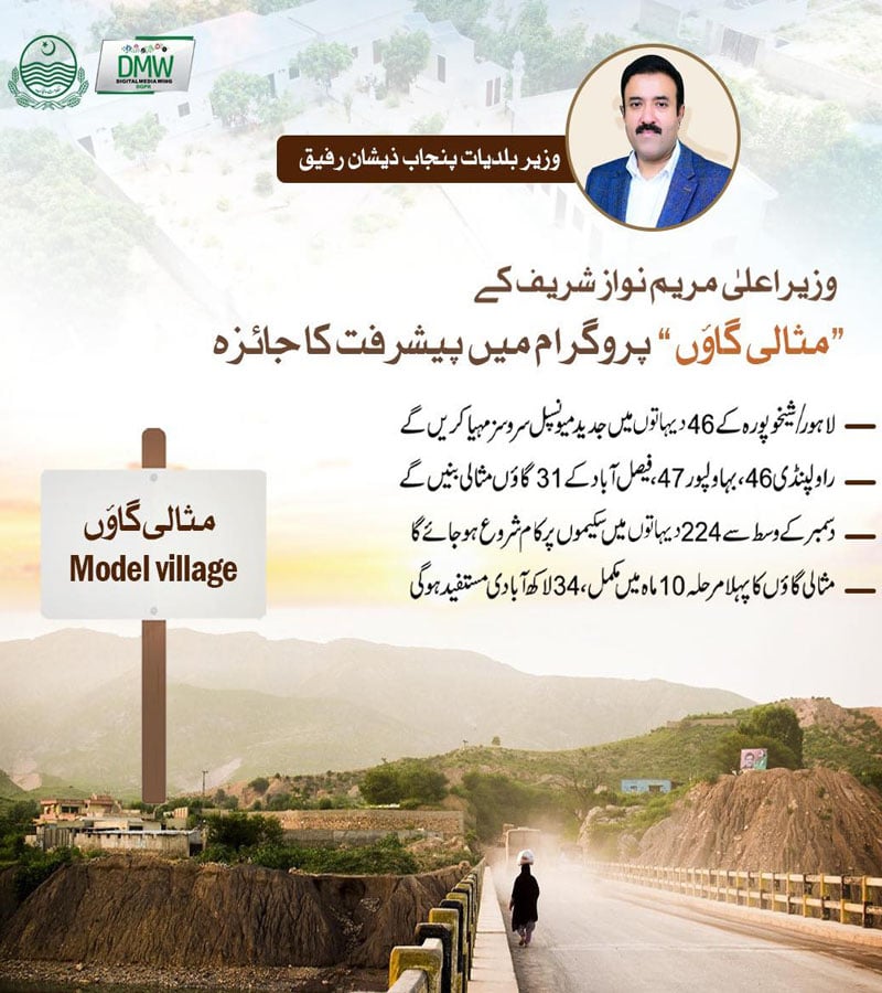 سوشل میڈیا پوسٹ کے مطابق لاہور/ شیخوپورہ کے 46 دیہاتوں میں جدید میونسپل سروسز مہیا کی جائے گی جبکہ روالپنڈی کے 46، بہاولپور کے 47 اور فیصل آباد کے 31 گاؤں مثالی بنیں گے۔