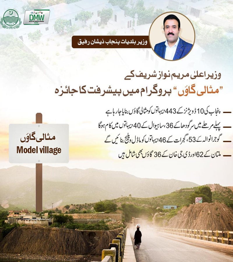 پنجاب کے 10 ڈویژنز کے 443 دیہاتوں کو مثالی گاؤں بنایا جارہا ہے، پہلے مرحلے میں سرگودھا کے 36، ساہیوال کے 40 دیہاتوں میں کام ہوگا